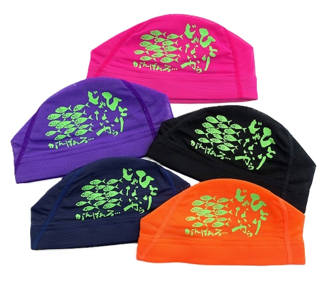 プリントメッシュキャップ【ひとりじゃないからがんばれる】水泳 帽子 水泳帽 競泳 スイムキャップ NEWLEVEL ニューレヴェル オリジナル