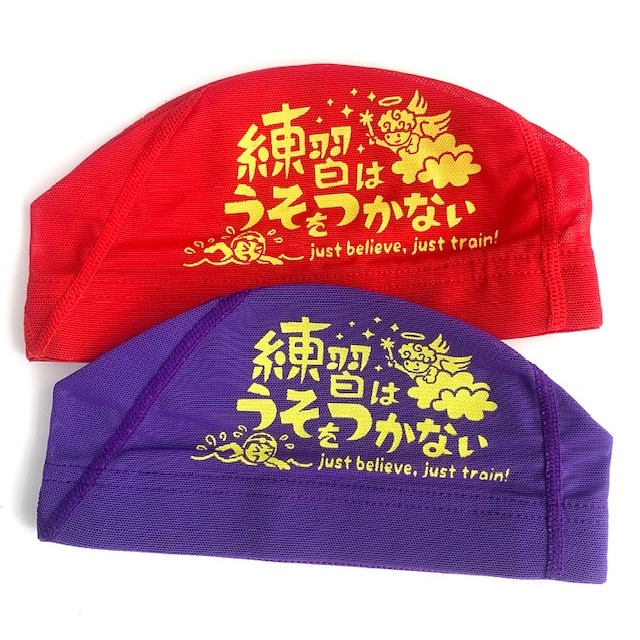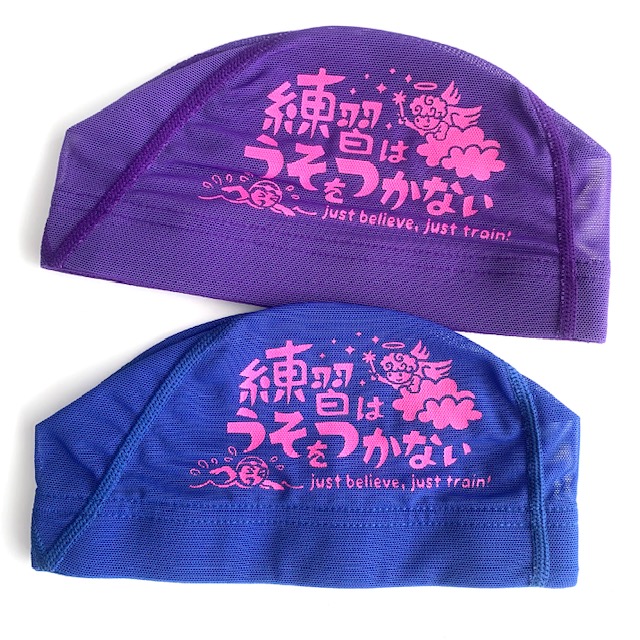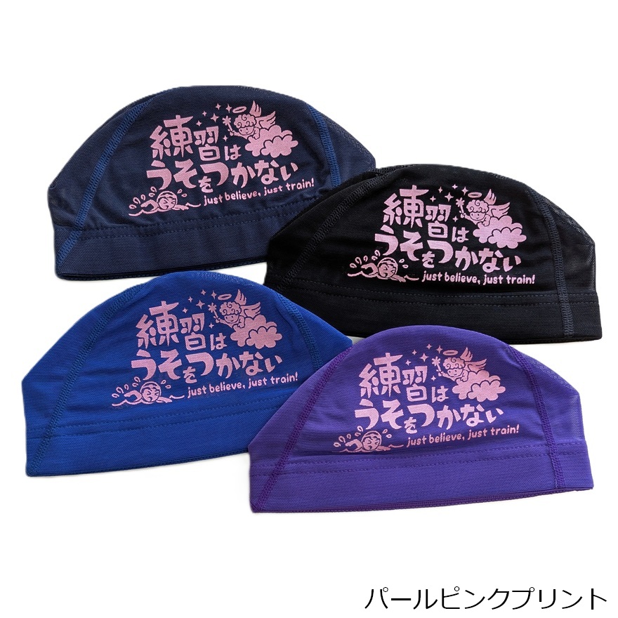 プリントメッシュキャップ【練習はうそをつかない】水泳 帽子 水泳帽 競泳 スイムキャップ NEWLEVEL ニューレヴェル オリジナル