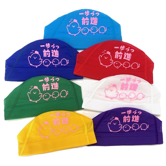 プリントメッシュキャップ【一歩づつ前進】ひよこ にわとり ヒヨコ スイムキャップ 水泳帽 水泳 帽子 競泳 スイミング NEWLEVELオリジナル