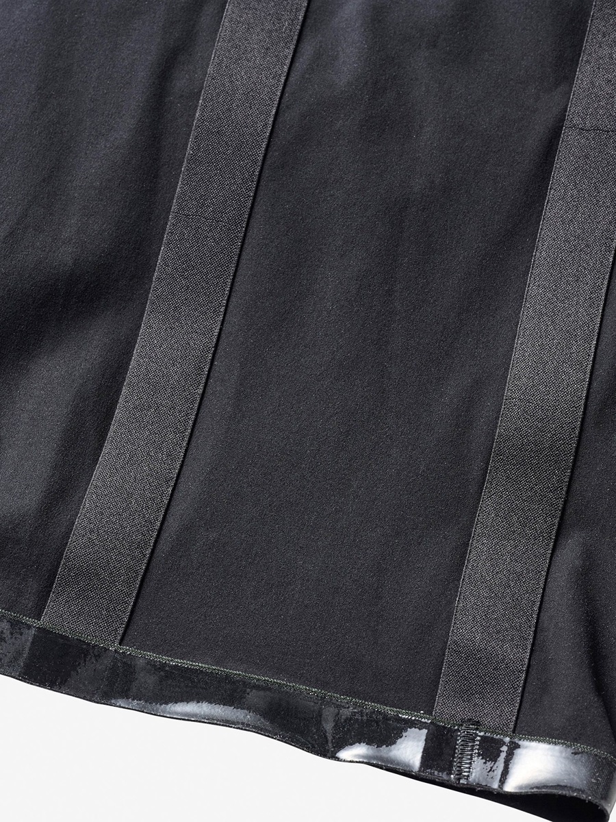 軽量性と柔軟性に優れ、適度なコンプレッション性能と動きやすさを併せ持つ布帛素材を使用し、しっかりとしたホールド感としなやかな運動性を兼ね備えています。また、縫製を極力控えたシームテープによる接合によって、凹凸の少ないフラットな仕上げが流水抵抗を低減し、フィット感を向上させます。