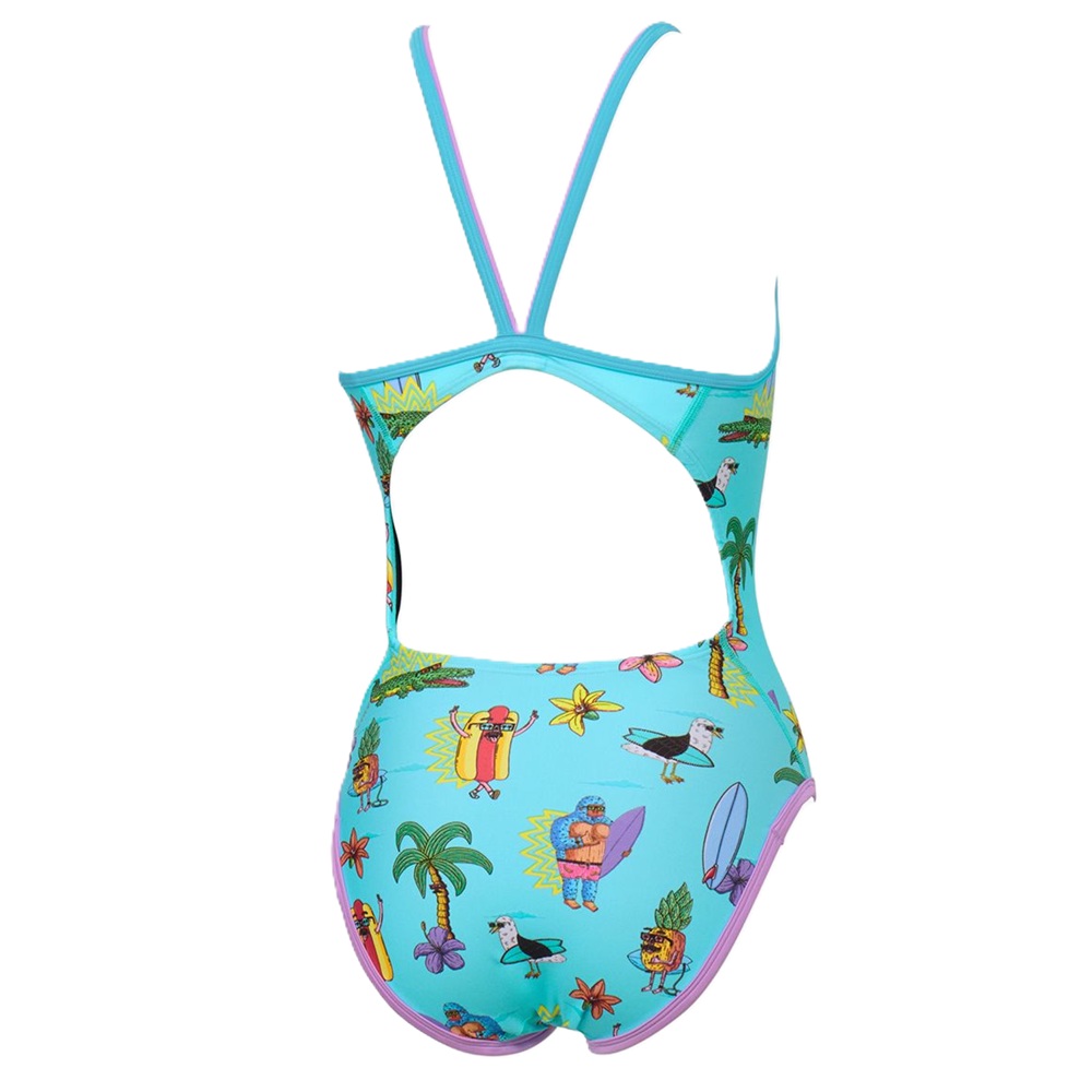 サングラスをかけたフルーツやサーフボードを抱えたゴリラなど、コミカルでキュートなオリジナルグラフィックを3種ご用意。カラフルなストラップで華やかさとメリハリ感を演出。まるでハワイにいるようなハッピーな気分でトレーニングをお楽しみください!