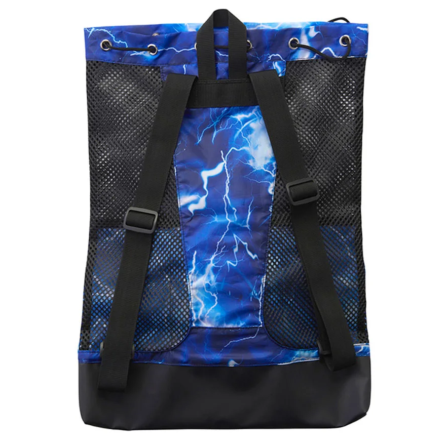 ビート板やフィンなどのトレーニングツールの持ち運びはもちろん、試合会場や招集所でウェアやスイミング用品を収納して持ち運ぶのにも便利なバックパック仕様。