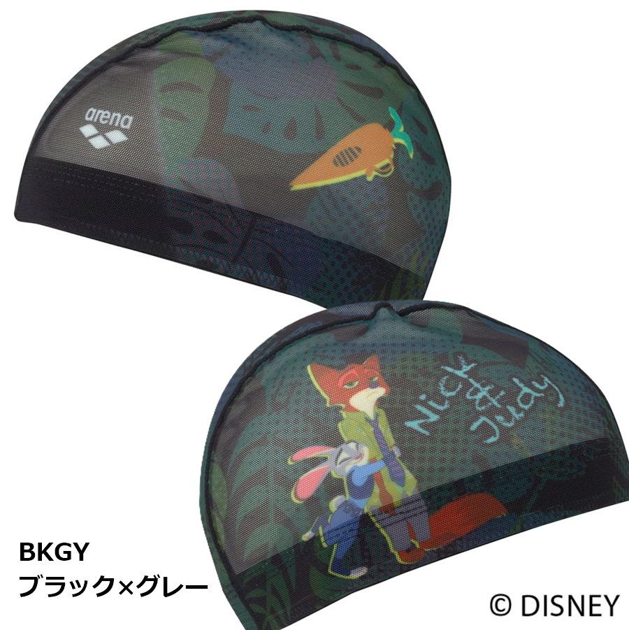 arena DISNEY メッシュキャップ AS6SSC83U ズートピア スイムキャップ 左右別プリント ジュディ ニック 水泳 ディズニー 帽子