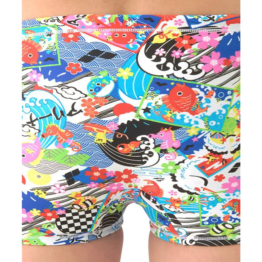 全てのスイマーに人気のアリーナくんの総柄ショートレッグタイプ。