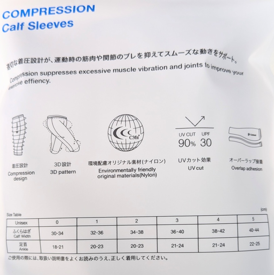 着心地のよさにこだわった着圧設計のコンプレッション(Compression)シリーズのカーフスリーブ。